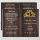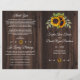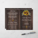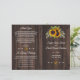 Conception de carte de mariage champêtre avec bouquets de tournesols à l'aquarelle, une forme semi-transparente avec un cadre texturé, des flèches avec des cœurs et des tournesols comme séparateur, le tout sur un fond de vieille grange. Utilisez l'outil Personnaliser pour ajouter vos informations. Les articles assortis se trouvent dans ma collection Rustic Sunflowers Old Barn.