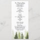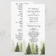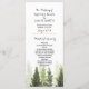 Carte de programme de mariage champêtre simple avec des arbres de pin rustiques. Articles assortis disponibles.