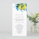 Ce programme de mariage botanique présente des citrons d'aquarelle vibrants dans les tons jaunes, complétés par des feuilles bleus et verts luxuriants. Les noms de la mariée et du marié, ainsi que la chronologie mariage, sont élégamment affichés dans un mélange de texte écrit à la main et de typographie sans serif. Le côté arrière présente un bleu Mykonos solide, créant un contraste saisissant. Ce design double face est parfait pour les mariages méditerranéens, toscans, italiens et grecs en plein air. Art et design de Victoria Grigaliunas de Do Tell A Belle. Pour en savoir plus sur ce thème mariage, visitez le site www.zazzle.com/dotellabelle.