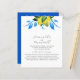 Ce programme de mariage botanique présente des citrons d'aquarelle dans les tons jaunes avec des feuilles bleus et verts. Les noms des mariées et mariées et la chronologie du programme de mariage sont définis en écriture manuscrite et sans serif typographie. L'ordre processionnel mariage revient à une couleur bleu Mykonos solide. Ce design double face est un choix moderne pour les mariages méditerranéens, toscans, italiens et grecs en plein air. Art et design de Victoria Grigaliunas de Do Tell A Belle. Pour en savoir plus sur ce thème mariage, visitez www.zazzle.com/dotellabelle