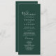 Ce programme de mariage vert émeraude est parfait pour un mariage boho. Le design élégant et rustique présente un vert foncé moody et une atmosphère bohème moderne. Coordonnée avec la Collection Emerald Greenery par Fresh & Yummy Paperie. Inclure les noms du couple, la date et l'emplacement du mariage, le message de remerciement, l'ordre de service, la fête de mariage et un mémorial optionnel "en mémoire d'amour".