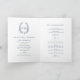 Programme de mariage d'art botanique à feuille ovale bleu marine. Un design simple de feuilles encerclant vos propres initiales monographiques en bleu marine et blanc. Autres couleurs et articles mariages correspondants disponibles. © Dessin et dessin de la feuille d'origine par Sarah Trett pour www.mylittleedenweddings.com sur zazzle.