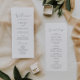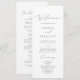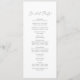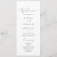 Ce délicat programme de mariage de calligraphie argentée est parfait pour un mariage moderne. Le design minimaliste romantique présente une belle et élégante typographie gris argenté sur un arrière - plan blanc au look épuré et simple. Inclure le nom de la mariée et du marié, la date et le lieu du mariage, le message de remerciement, l'ordre de service, la fête de la mariée et un mémorial optionnel "en mémoire d'amour".