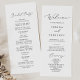 Ce délicat programme de mariage de calligraphie noire est parfait pour un mariage moderne. Le design minimaliste romantique présente une belle et élégante typographie noire sur un arrière - plan blanc au look épuré et sobre. Inclure le nom de la mariée et du marié, la date et le lieu du mariage, le message de remerciement, l'ordre de service, la fête de la mariée et un mémorial optionnel "en mémoire d'amour".
