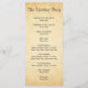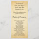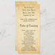 Un programme de mariage avec un design arrière - plan imprimé dans le style de vieux papier vintage, conçu pour ressembler à un faux motif parchemin. L'arrière - plan est un imprimé motif dans des tons beige jaunâtre / tan. Il y a du texte noir élégant qui peut être personnalisé.