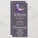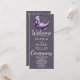 Présentant notre programme de mariage d'harmonie céleste, un mélange captivant de mystique et d'élégance moderne. Enveloppé dans un décor de gris fumée sophistiqué, ce programme de mariage vous transporte dans un paysage rêveur où une lune contemporaine bleue et violette crescent grace le ciel. Décoré de nuages bleu et violet éthérés et d'un parfum d'étoiles blanches, jaunes et dorées, ce design capte l'allure enchanteresse d'un chef-d'oeuvre céleste. Au verso du programme, vous découvrirez une liste des membres de votre mariage qui vous tiennent à coeur, reconnaissant leur rôle important dans votre journée spéciale. Le texte du programme est soigneusement présenté dans une combinaison classique de noir et de gris, principalement en utilisant une police de bloc simple pour la clarté et la lisibilité. Les mots "Welcome", "Ceremony" et "Wedding Party" sont délicatement reproduits dans une police de caractères décoratifs gracieuse, ajoutant une touche de sophistication et de charme à l'ensemble du design. Notre programme de mariage d'harmonie céleste est le choix idéal pour les couples qui recherchent un thème unique, céleste ou mystique pour leur jour de mariage. Avec sa palette cosmique et ses polices de caractères gracieuses, ce programme guide non seulement vos invités mais sert aussi de gardien chéri, capturant l'ambiance magique d'une soirée céleste. Immergez votre mariage dans les merveilles cosmiques de l'univers avec le Celestial Harmony Wedding Program, un témoignage de votre histoire d'amour parmi les étoiles.