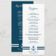 Un programme de mariage moderne sur le thème nautique, avec une illustration d'ancre et des rayures de marine. Peut également être utilisé comme menu Mariage.