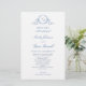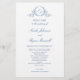 Élégant programme de mariage blanc et bleu avec un beau monogramme dessiné à la main avec les initiales du couple en calligraphie. Eléments calligraphiques modernes écrits à la main. Possibilité de modifier et d'ajuster le texte en sélectionnant "Modifier à l'aide de l'outil de conception". Avant avec les détails de la cérémonie mariage, retour avec les noms de la fête de mariage et message de remerciement pour vos invités. Disponible en deux options de type papier. Une partie de notre collection "Aquarelle Bleue, Mariage Monogramme Botanique" avec divers produits de coordination disponibles.