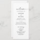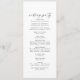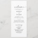 Ce programme de mariage de script moderne est parfait pour un mariage minimaliste. Le design simple en noir et blanc présente une typographie industrielle unique avec style boho moderne. Personnalisable dans n'importe quelle couleur. Gardez le design minimal et élégant, en l'état, ou personnalisez-le en ajoutant vos propres graphiques et artwork. Inclure le nom de la mariée et du marié, la date et le lieu du mariage, le message de remerciement, l'ordre de service, la fête de la mariée et un mémorial optionnel "en mémoire d'amour".