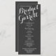 Ardoise foncée, tableau noir inspiré texte design imprimé carte à crémaillère programmes de mariage avec du texte blanc ou modifier la couleur du texte comme préféré.