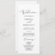 Ce délicat programme de mariage noir imprimable est parfait pour un mariage moderne. Le design minimaliste romantique présente une belle et élégante typographie noire sur un arrière - plan blanc au look épuré et sobre. Inclure le nom de la mariée et du marié, la date et le lieu du mariage, le message de remerciement, l'ordre de service, la fête de la mariée et un mémorial optionnel "en mémoire d'amour". Disponible sous forme de cartes imprimées et/ou de fichier imprimable.