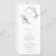 Un magnifique programme de mariage floral aquarelle avec des fleurs violettes et bleues.