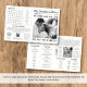 VERSION CORRECTÉE : https://www.zazzle.com/newspaper_wedding_program_timeline_infographic-256496955237999893 Nous avons découvert une petite faute de frappe dans le concept de recherche de mots : 'mari' est mal orthographié comme 'mari'. Nous avons créé une version corrigée du design, lien ci-dessus. Faites de votre programme de mariage un souvenir inoubliable avec notre programme de style journal. Notre programme comporte quatre pages de contenu personnalisé pour rendre votre journée encore plus spéciale. Une chronologie mariage pour tenir les clients informés des événements de la journée. Votre menu, afin que les clients soient au courant de la cuisine délicieuse qu'ils apprécieront. "Our Story", une section personnalisée où vous pourrez partager votre histoire d'amour unique avec vos invités. La quatrième page comprend une recherche de mots mariages amusants pour divertir les invités. Notre programme de style journal est un choix unique qui ajoute une touche de charme vintage à votre mariage. Avec son design classique, il est parfait pour n'importe quel thème mariage. De plus, il est facile de customiser avec votre propre libellé et vos photos. Commandez dès maintenant et impressionnez vos invités avec cette belle et fonctionnelle addition à votre jour de mariage.