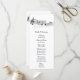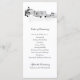Cette carte vous permet de décrire votre fête de mariage d'un côté, et votre programme de cérémonie de mariage de l'autre. Customisez si vous devez ajouter des lignes de texte supplémentaires. Doté d'une clef noire trible, d'un personnel musical et de notes de musique contre un arrière - plan blanc.