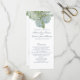 Des hydrangées bleues avec un arrière - plan bleu poussiéreux (pantone 16-4010tpx ou hex #8c9dad) sur le programme de cérémonie de mariage modifiable. Parfait pour le printemps, l'été, les mariages de jardin. Voir toutes les pièces de coordination dans la collection Mariage hydrangée bleue.