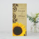 Un programme rustique de mariage de tournesol. Avec une texture brune vintage, des tourbillons fleuris et un tournesol jaune. Parfait pour un mariage campagnard, mariage tournesol, mariage grange et plus encore !