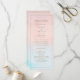Ce programme de mariage d'aquarelle d'été au coucher du soleil est parfait pour votre mariage de plage tropicale. Conçu avec un corail de pêche orange minimaliste et une aquarelle bleue poussiéreuse, accompagné d'une simple typographie dorée de sable rustique. Il est sûr de correspondre à vos vibes de mariage de destination côtière bohème moderne.