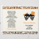 Halloween crânes orange et noirs style livret de cérémonie plié mariage et programme de fête qui affiche une mariée crâne avec un arc orange et un marié avec un casquette orange sur l'ivoire et une bordure motif crâne noir et ivoire. Ce modèle de style gothique moderne et amusant, personnalisable, avec une police de style vintage, est idéal pour un mariage d'Halloween. Pliez-le au centre pour avoir un programme plié. Choisissez seulement le type de valeur du papier comme il se plie bien.