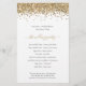 Budget Gold Parties scintillant Script programme de mariage. Une taille PLUS GRANDE 5,5" x 8,5" à un prix abordable, sur un élégant stock LINEN de 110 lb - pour un sentiment de luxe à un bon rapport qualité-prix, c'est parfait pour les invitations, menus, programmes, etc. Cette alternative de 5,5 x 8,5 pouces est également disponible dans d'autres choix de papier. Le stock de carte SEMI-GLOSS 110 lb est à peu près de la même épaisseur qu'une carte postale, donc fonctionne bien aussi pour les invitations. Le papier FELT 100 lbs est de couleur bouffante, PAS blanc, donc ajoute une touche rustique. Le stock de papier MATTE 80lbs est blanc vif, pour une impression nette, idéal pour vos menus et programmes, tandis que le papier SATIN 80lbs est mince et léger, idéal pour les enceintes. Style glam avec fausse parties scintillant bordant le dessus de chaque côté. Personnalisez facilement le texte selon vos besoins.