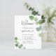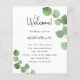 Un programme de mariage moderne, élégant, chronologie. Arrière - plan blanc, orné de végétation d'eucalyptus, sprigs. Personnalisez et ajoutez vos noms et les détails du mariage. Lettres de couleur noire. Si vous avez plus de texte, il est possible de réduire l'espace de ligne et d'ajouter du texte au dos.
