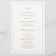 Programme de mariage en or simple mais élégant avec un agencement minimal et propre avec votre monogramme en haut avec une bordure. Ce programme de mariage de style classique avec une touche traditionnelle est idéal pour un mariage formel. Ces programmes de mariage sont imprimés sur des feuilles de papier pour une option économique.