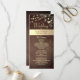 Guidez vos invités à travers votre cérémonie avec ce programme de mariage rustique élégant, doté de fausses guirlandes lumineuses dorées, d'une délicate dentelle florale et d'un fond texturé en bois chaud. Idéal pour les mariages d'automne ou d'hiver, les lieux de grange ou les célébrations bohèmes romantiques. Personnalisable avec les noms du cortège nuptial et les détails du calendrier.