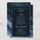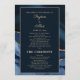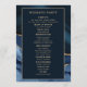 Élégant, moderne marine bleu et or marbre agate programme de mariage / carte de fête de mariage pour vos invités à la cérémonie de mariage. Inclut un accueil à vos invités, les noms de la mariée et du marié et leur date de mariage, et l'horaire de la cérémonie sur le devant de la carte. Le verso de la carte comprend les noms des parents et de la fête nuptiale.