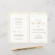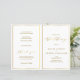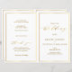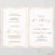 Un programme de mariage élégant pliable avec une fausse bordure d'or qui s'adaptera à de nombreux thèmes mariages. Conçu pour être imprimé de part et d'autre puis plié à la maison, la couverture montre le lieu tandis que l'intérieur peut être édité avec l'ordre de service et la fête de mariage.Ce design moderne avec des bordures d'or est adapté pour un service religieux de mémoire d'église ou une cérémonie humaniste. L'effet de feuille d'or FAUX est imprimé et n'est PAS métallique.