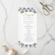 Tout le libellé de ce programme de mariage peut être customisé. Le programme fait partie d'une collection avec une aquarelle de feuillage tropical avec un script en faux or.Un design élégant et simple.
