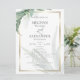 Programme de mariage aquarelle | Assurez-vous que vos invités savent ce qui se passe et quand s'attendre à quel événement - au dos est une liste de toute la fête de mariage. Feuilles tropicaux modernes et élégants entourant un cadre géométrique doré aux coins diagonaux. Reverse est une couleur coordonnée gratuite. Personnaliser texte, style de police, couleur et taille. OEuvre originale créée pour BarefootBride™ par © WhimsicalArtwork™. Il fait partie d'une suite de papeterie Mariage complète avec mariage, baby shower et autres articles de papeterie d'événements correspondants.