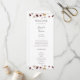 Ce programme de mariage fleur sauvage en cuivre bordeaux est parfait pour votre classique rouille boho rustique, blanc, marsala mariage. Le design présente une couronne bohème ou un bouquet de fleurs sauvages d'aquarelle moderne violet, rouge, gris et rose vif, ainsi que des oranges brûlées et de la verdure dorée. Dans la conception sont présentés des pavots et de l'orge. Le design est idéal pour un mariage de jardin de printemps d'automne ou d'automne simple et minimal. Veuillez trouver d'autres articles de papeterie mariage correspondants ou coordonnés dans le reste de cette collection.