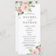 Carte de programme de mariage élégant avec des fleurs aquarelles peintes en rose rosé, blanc et feuillage vert. Pour une personnalisation plus avancée de ce design, veuillez cliquer sur le bouton "Personnaliser". Des articles assortis sont également disponibles.