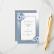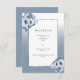 Une carte élégante de détails de réception de mariage. Un cadre en faux argent et blanc avec des roses aquarellés dans les tons bleus. Un dégradé bleu foncé et chic, arrière - plan sombre. Modèles pour vos détails de réception de mariage, texte gris foncé. Dos : arrière - plan bleu poussiéreux. Parfait pour un mariage d'hiver ou de printemps.