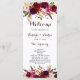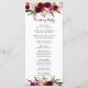 Carte de programme de mariage de style bohème avec une illustration aquarelle de pivoines et de roses bourguignon, rouge et rose avec accent de plumes. Ceci est parfait pour l'automne | automne et l'invitation de mariage d'hiver. Les articles assortis sont également disponibles.