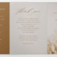Utilisez ce design pliable en trois comme programme de mariage ou itinéraire. Parfait pour les cérémonies plus longues ou les mariages avec divers événements ou instructions ! Modifiez facilement ce programme avec toutes vos informations de mariage !