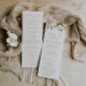 Cet élégant programme de mariage floral verdoyant et doré est parfait pour un mariage rustique. Le design est composé de roses blancs, roses et roux peints à la main et d'une touche de verdure, ornant des cadres géométriques dorés, inspirant la beauté artistique.