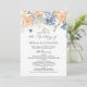 Ce design présente une illustration aquarelle de fleurs pâles pêche et bleu blush avec des confettis à effet doré sur le dessus de la carte.