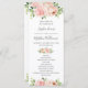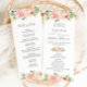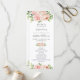 Conçu pour se coordonner avec notre collection de mariage Bloomsbury, ce programme de mariage élégant présente une belle composition florale rose pâle à l'aquarelle et une écriture manuscrite au pinceau. Personnalisez-le avec vos détails de mariage facilement et rapidement, il suffit d'appuyer sur le bouton personnaliser pour réorganiser et formater le style et l'emplacement du texte. Double face. (c) The Happy Cat Studio