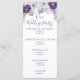 Ce programme a des fleurs d'aquarelle violette clair et foncé, des éléments floraux feuille et argent. La copie est entièrement modifiable. Vous pouvez également modifier la police. Cette carte a des invitations, enveloppes, étiquettes et timbres correspondants. Faites coordonner tous vos articles mariages !