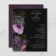 Programme de mariage floral violet et noir gothique. Feuilles de faux or en feuille. La police de caractères Script met en valeur une police de caractères serif facile à lire. Facile à adapter à vos propres besoins de mariage.