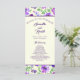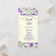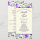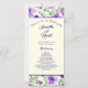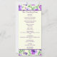 Un programme de mariage avec des fleurs aquarelles violettes et vertes.