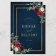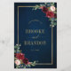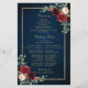Programme de mariage géométrique floral bleu marine bordeaux avec un élégant bouquet de feuilles d'eucalyptus bleu marine, bleu roi, blanc, rose, bordeaux, rose marsala et vert sauge et un élégant cadre géométrique neutre avec paillettes dorées. N'hésitez pas à me contacter pour toute aide de personnalisation ou si vous avez besoin d'un autre produit avec ce design.