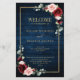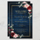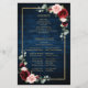 Elégante et moderne carte de programme de mariage géométrique aquarelle fleurie et romantique dispose d'une belle bordeaux / marsala, rose roux, pêche, roses bleu marine aquarelle avec feuillage assorti sur bleu marine bois arrière - plan et cadre or. Parfait pour un mariage d'automne/mi-été. S'il vous plaît trouver d'autres modèles et variantes de mon magasin "blissweddingpaperie". Et n'hésitez pas à me contacter pour plus de personnalisation ou de correspondance d'éléments