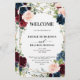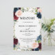 Elégante et moderne carte de programme de mariage géométrique aquarelle fleurie et romantique dispose d'une belle bordeaux / marsala, rose roux, pêche, roses bleu marine aquarelle avec feuillage assorti sur bleu marine bois arrière - plan et cadre or. Parfait pour un mariage d'automne/mi-été. S'il vous plaît trouver d'autres modèles et variantes de mon magasin "blissweddingpaperie". Et n'hésitez pas à me contacter pour plus de personnalisation ou de correspondance d'éléments