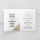 Un élégant, moderne, or et blanc avec une typographie manuscrite dorée imprimée. Cette invitation de programme de mariage géométrique glamour est l'impression parfaite pour tout événement de mariage de mariée et de marié. Personnalisez ce design avec vos détails et monogramme initial.