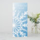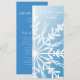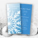 Annoncez l'ordre de votre cérémonie de mariage de décembre, janvier ou février avec le programme de mariage hivernal festif Blue Snowflake. Ce programme de mariage élégant sur le thème de la forêt hivernale personnalisé présente un design complexe de flocon de neige blanc sur un fond dégradé bleu.