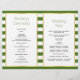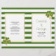 Couvet irlandais et rayures blanches et vertes Saint Patrick's Day plié cérémonie mariage et programme de fête. Les éléments de ce modèle de programme de mariage sont le motif rayé vert et blanc et le shamrock aux coins d'un cadre blanc avec votre texte. Choisissez seulement le papier de valeur pour ce programme car il se plie bien et le plier en deux manuellement.