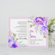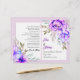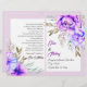 Ce programme de mariage est une belle façon de présenter votre journée spéciale. Il présente un joli design floral avec des fleurs d'aquarelle violette et des accents bleus aux coins. Les fleurs créent un contraste avec le cadre blanc qui contient votre texte. Le cadre a une bordure lilas qui correspond à la couleur des pages intérieures. Les pages intérieures ont du texte blanc sur un arrière - plan lilas, ce qui le rend facile à lire. Vous pouvez customiser le texte avec vos noms, date, détails de cérémonie et informations de fête. Pour utiliser ce programme, il suffit de le plier au milieu et vous aurez un livret étonnant qui reflète votre style et votre personnalité.