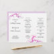 Programme de mariage modèle en blanc avec le design de la magenta fleurie. L'exemple est présenté sur du papier de lin joli et abordable avec du texte personnalisé en trois sections à plier en tiers après l'achat. Les ornements, sous forme de tourbillons de couleur feuillus, décorent le côté gauche du papier, qui sera l'avant du programme. Une autre floraison de couleur se trouve en bas entre le centre et la dernière page. Pliez ce papier comme un accordéon et vérifiez que tout le texte est bien orthographié et placé. L'inverse est une couleur lavande solide.
