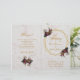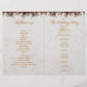 Un programme de mariage plié très moderne, combinant plusieurs tendances : géométrique, marbre, métallisé (or) et quelques polices spéciales.